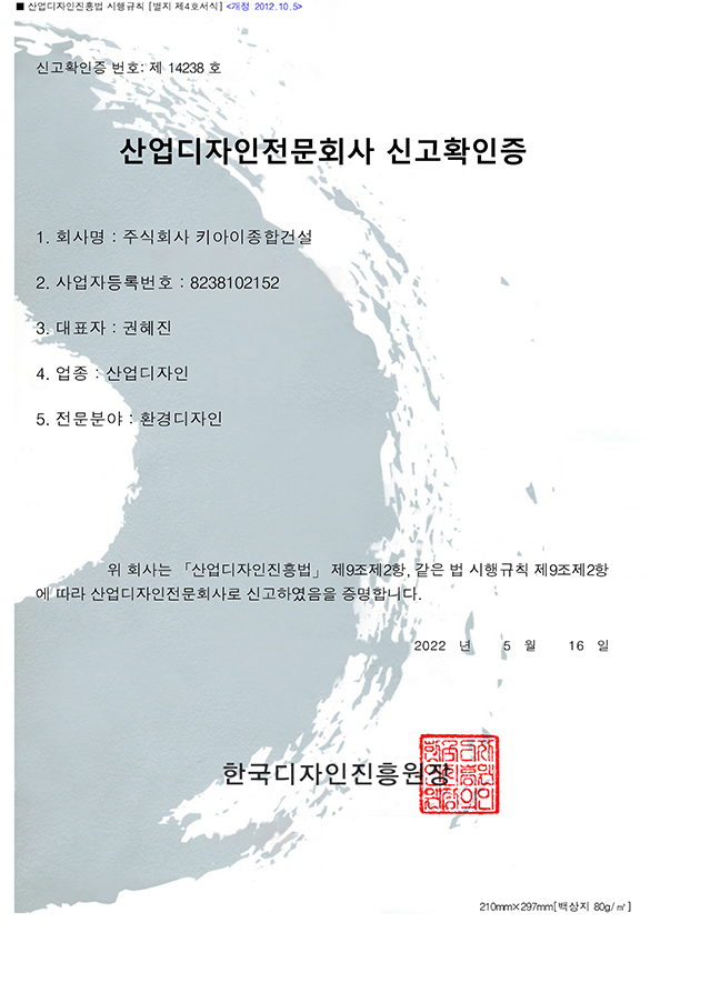 산업디자인전문회사 신고확인증