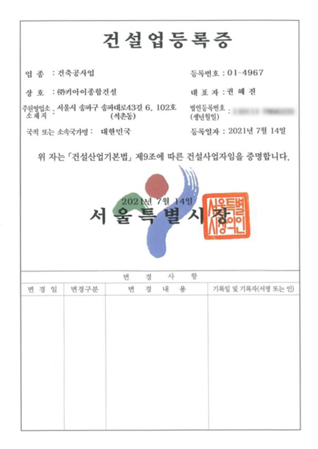 건설업등록증