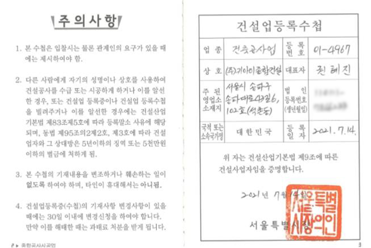 건설업 등록수첩