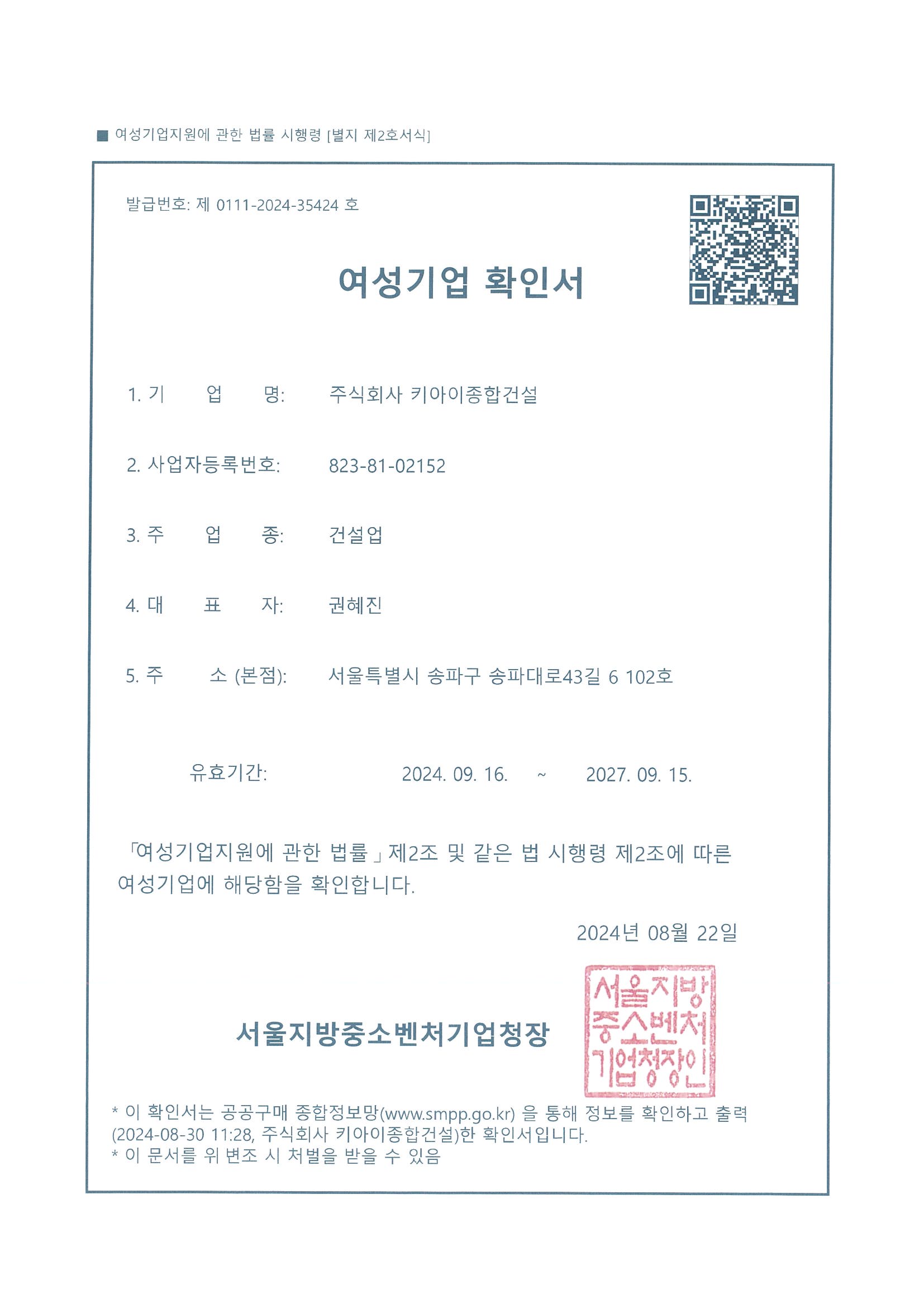 여성기업확인서